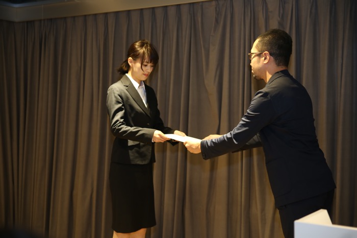 内定証書の授与。喜びと緊張が相まった表情が印象的でした。
